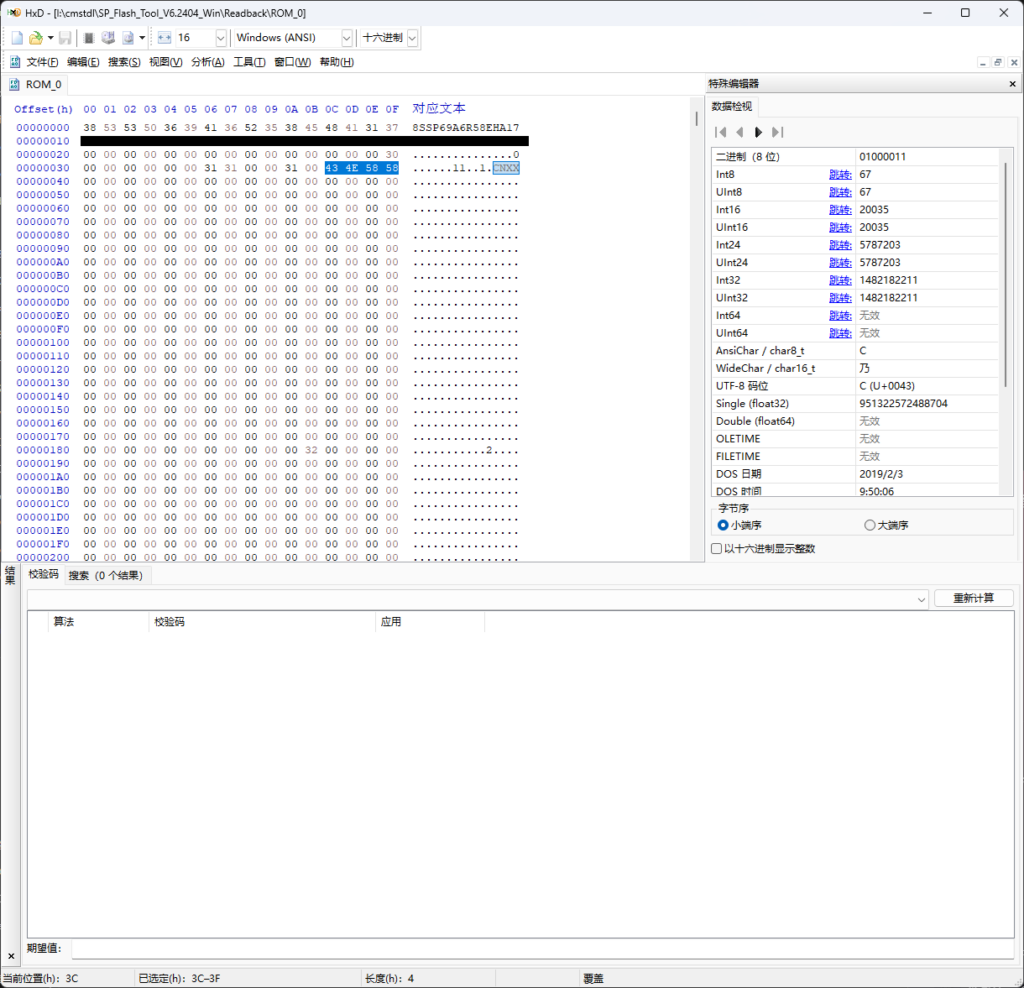 使用任何你顺手的 16 进制编辑器打开回读出来的 proinfo 分区数据。你可以在偏移量 0x3C – 0x3F 找到区域代码。